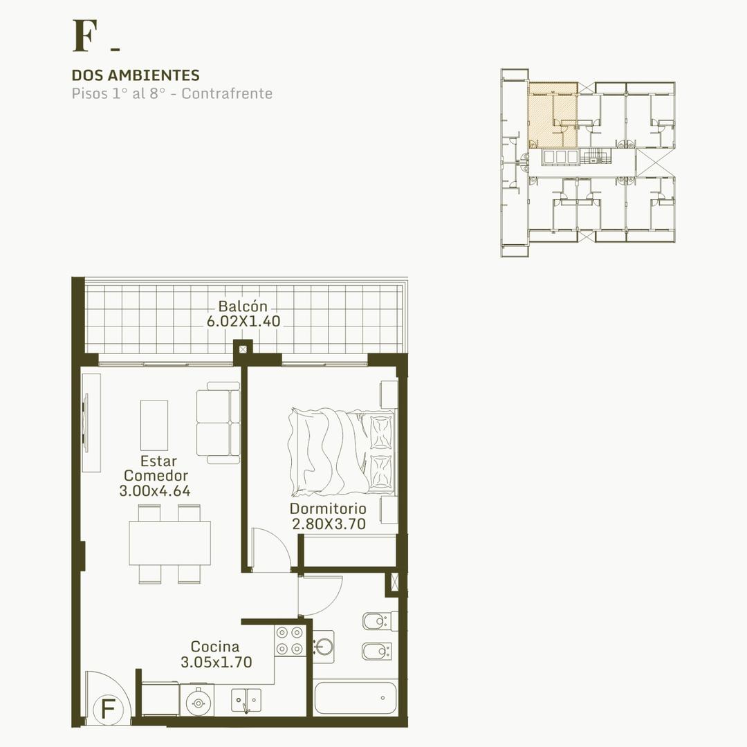 SE TRATARÁ DE UN DEPARTAMENTO DE DOS AMBIENTES, AL CONTRAFRENTE, QUE SE COMPONDRA DE ESTAR COMEDOR CON COCINA INTEGRADA, UN DORMITORIO, BAÑO Y BALCON.-